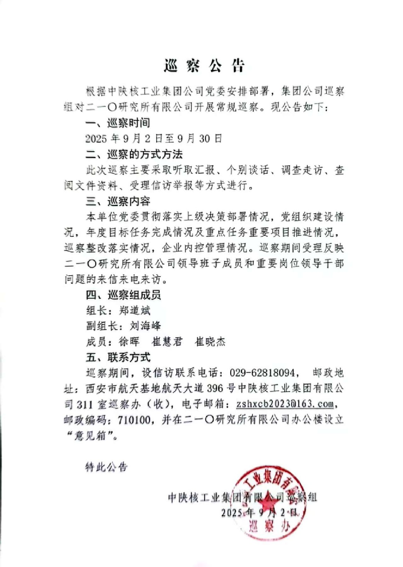 9月2日,中陜核集團(tuán)巡察組進(jìn)駐二一〇所,并召開巡察工作動員會。集團(tuán)公司黨委委員、紀(jì)委書記蒙曉記,巡察辦主任兼巡察組組長鄭道斌,建設(shè)集團(tuán)黨委委員、紀(jì)委書記劉海峰及巡察組成員,...